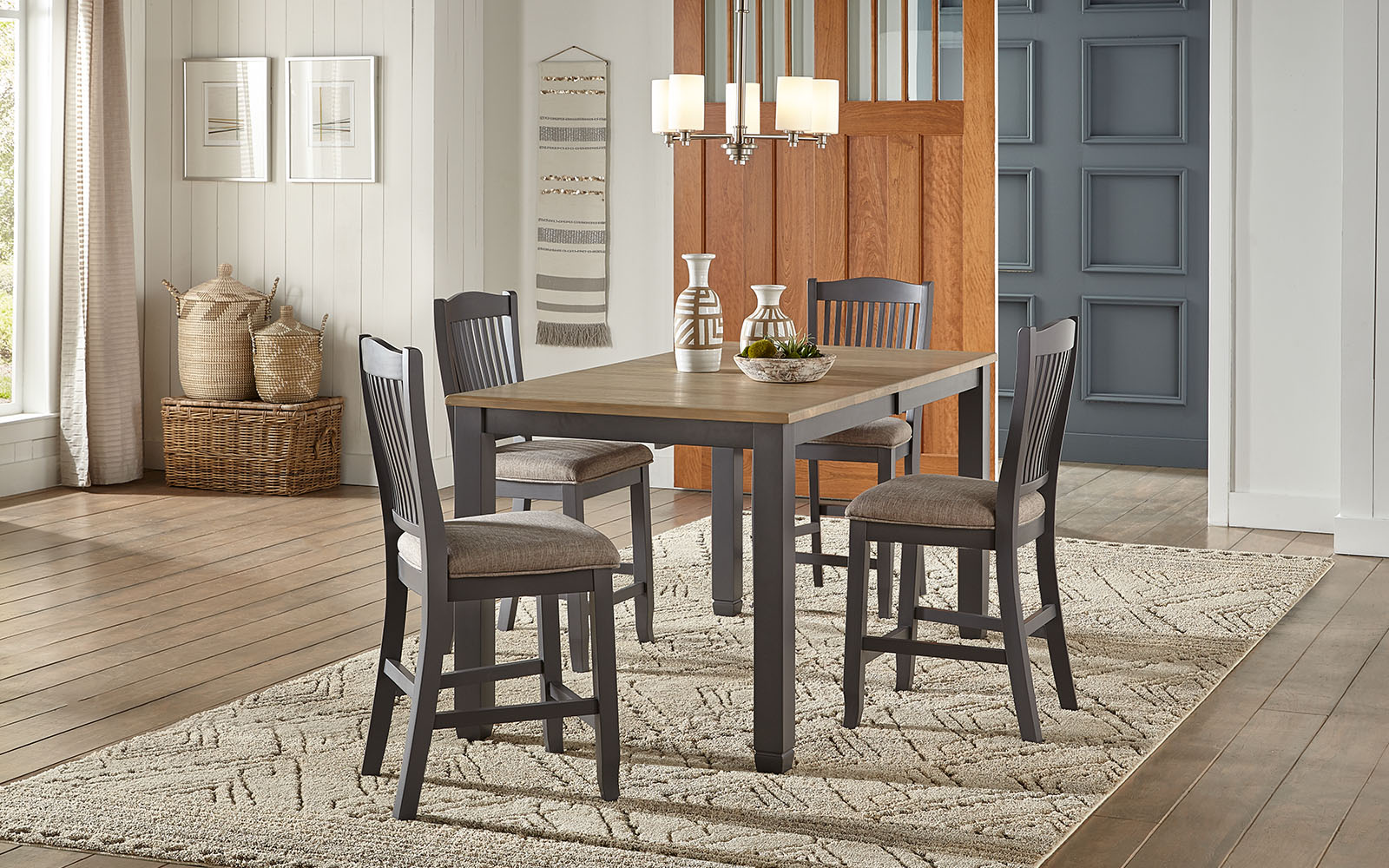 The serenity of the sea and the quaint charm of a cozy cottage come together in Port Townsend. Combining subtle hints of coastal living with simple lines and farmhouse elements, this dining group will bridge the divide and compliment homes from coast to coast.Read More