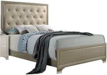 The Carine Champagne Queen Upholstered Panel Bed by ACME Furniture features a luxurious champagne finish with a tufted headboard, adding an elegant and refined touch to any bedroom. The soft, plush upholstery offers comfort, while the sleek design creates a sophisticated, timeless centerpiece for a restful sleep experience.Read More