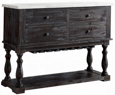 The Gerardo dining collection delivers an elegant approach to rustic-inspired design, and tapered profile with a white marble top for a deliciously modern serving of mixed media style. Features a four drawer and open bottom shelf.Read More