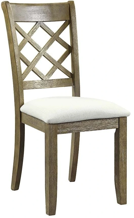 The Karsen dining chairs are inviting with their plush cushioned seats which are covered in beige fabric for hours of enjoyment. The chairs are accented with a diamond-slatted backrest for some design flare and a moderate modern touch. The rustic oak finish gives the chairs a homey and timeless look.Read More