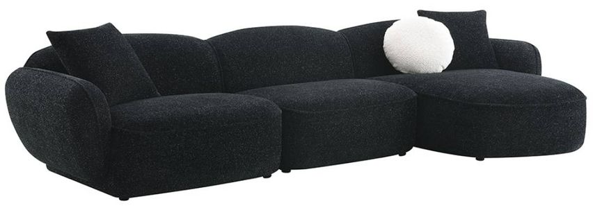 The Lucifer 3-piece black right-arm facing sectional and chaise offers luxurious comfort with its plush chenille upholstery. Featuring a right-arm chaise, deep seating, and stylish design, this sectional creates an inviting space perfect for relaxation and gatherings.Read More