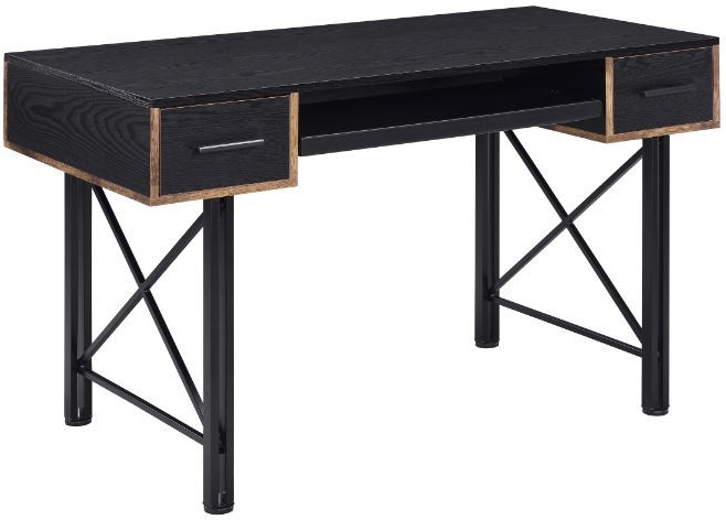 The Settea Desk bring a mix-and-match look with distressed casegood and black metal frame. Found atop a double pedestal base, It is accented with metal trim and "X" shaped support for industrial details. The rectangular table is designed for a spacious top, while rustic finish will warm your workplace with natural earth tone.Read More