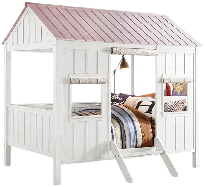Take bed-time with this incredible Spring Cottage full size bed. This is a dream come true for children everywhere, the bed is sure to transform any room into the ultimate dreamland. The bed features pink roof top with white finish throughout the whole house.Read More