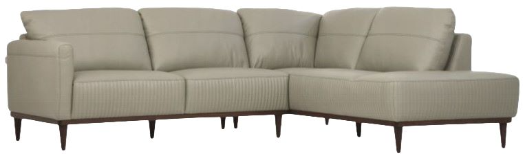 Featuring an attractive contemporary design and plush seating for luxurious comfort, the Tampa sectional sofa is one you'll want to spend lots of time in. This beautiful pearl gray or airy green leather sofa features contrast stitching and unique wooden trim and tapered legsRead More