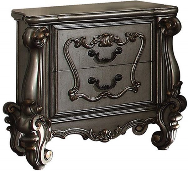 The Versailles nightstand is the perfect accent to create the style of royalty your bedroom has been needing. This nightstand crafted in wood with a cherry oak finish was inspired by old European design with brown copper metal hardware and intricate wood carvings on the front of the two drawers.Read More