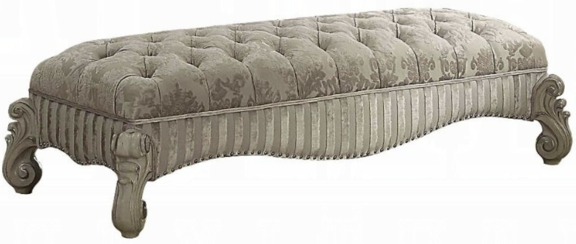 The Versailles Bench presents a hand-crafted piece inspired by the most luxurious designs of the past. The stunning upholstered ottoman comes in a bone White finish and features an ivory fabric button-tufted seat.Read More