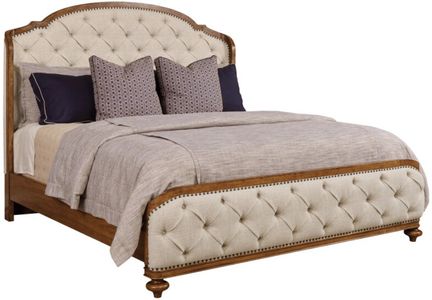 American Drew's history dates all the way back to 1927. The Berkshire Collection brings this wealth of experience into a fresh expression of casual European traditional style. This stunning Upholstered bed shows off this experience with it shaped shelter design that frames tufted headboard and footboard elements trimmed with burnished nail-head.Read More