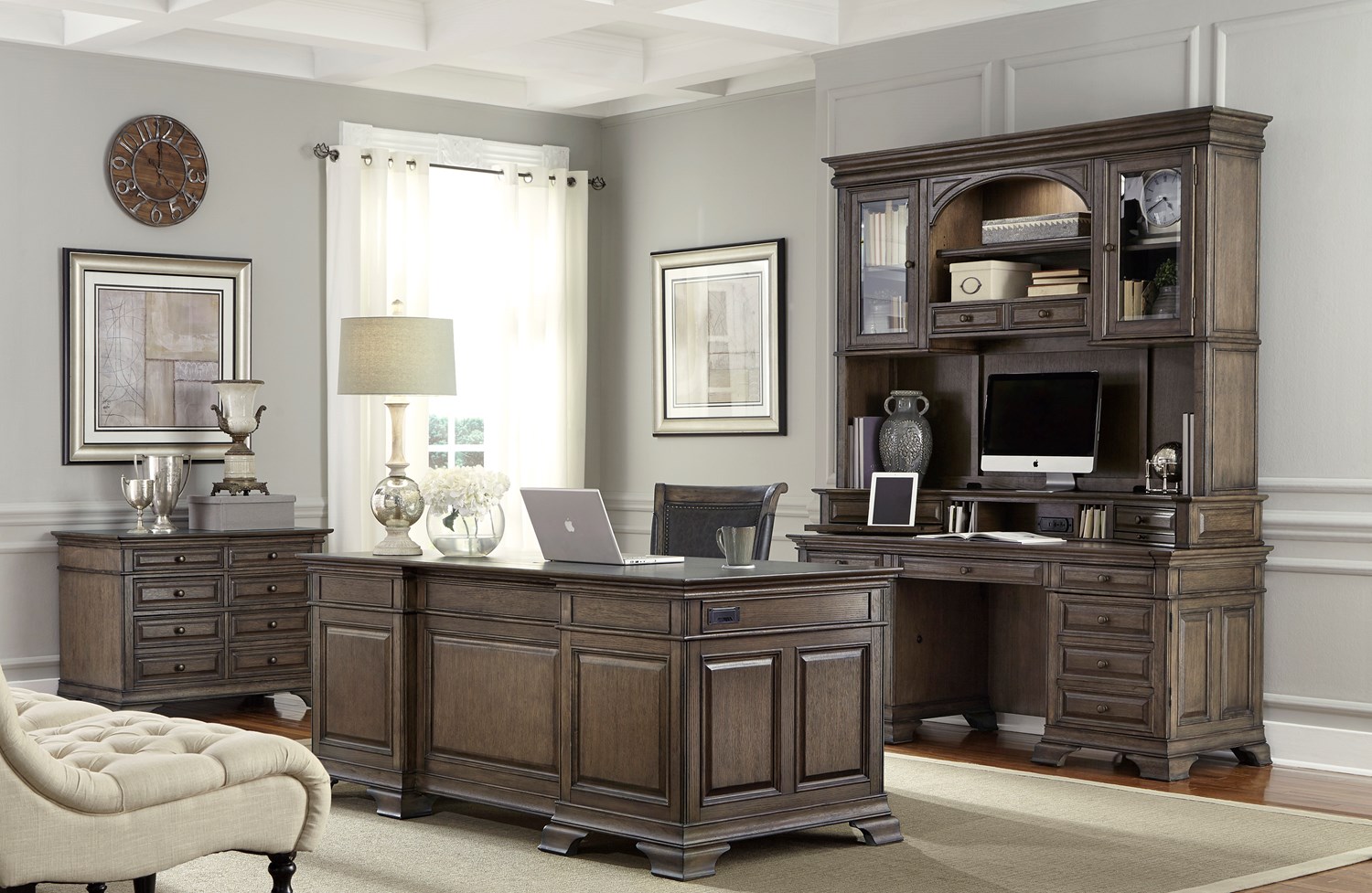 Aspenhome™ Arcadia Truffle 72" Executive Desk made of rubber wood solids and white oak veneer.Read More