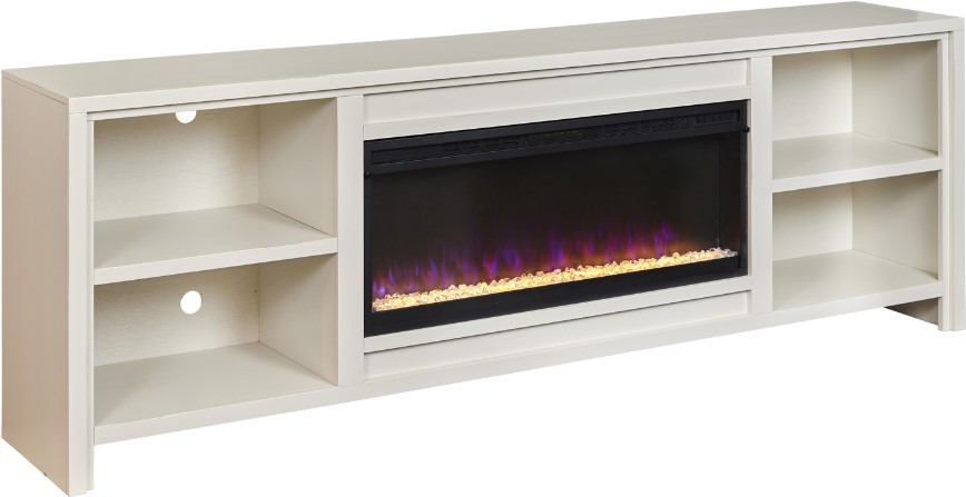 Electric Fireplace: Heater provides supplemental zone heating for small and large rooms. Tempered glass front display includes a traditional log set and ember bed. Eco-friendly, energy efficient fireplace does not emit any emissions or other hazardous byproducts. Remote control (batteries included) to provide added convenience. Flame effect can be operated with or without heat, providing the ambiance of a gentle rolling fire all year long. 4,600 BTU heater provides supplemental zone heating for up to 400 square feet.