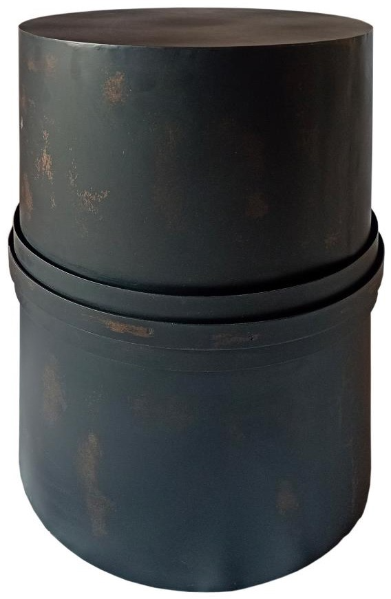 Cylinder silhouette visually divided in half with center band accents