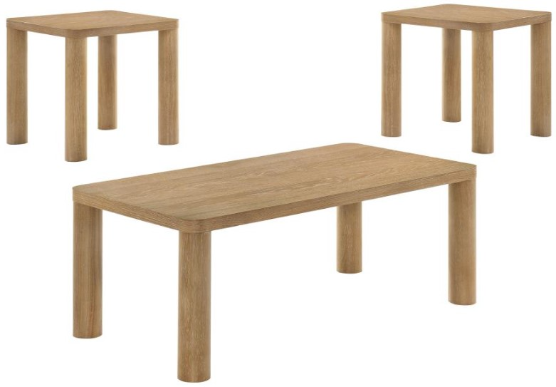 This coordinated table set unites organic warmth with geometric elegance. Rounded legs and gently curved corners bring softness to the structured forms, while the wood texture grounds the overall design. Whether used as a living room table set or occasional table pairing, the ensemble invites visual calm and versatility in one cohesive design statement.Read More