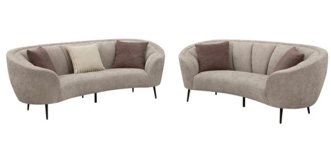 Bring graceful energy to your living room with this two-piece modern sofa set. The kidney silhouette, channel-tufted back, and soft beige upholstery create a stylish ambiance. Tailored profiles with shelter backs, sloping arms, and black tapered legs add contrast and depth.Read More