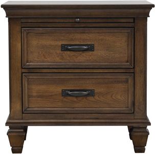 Radiate subtle rustic charm throughout a classic motif with this modern two-drawer nightstand. With features like a pull-out service tray and cord access for charging electronics, this nightstand is full of contemporary updates.Read More