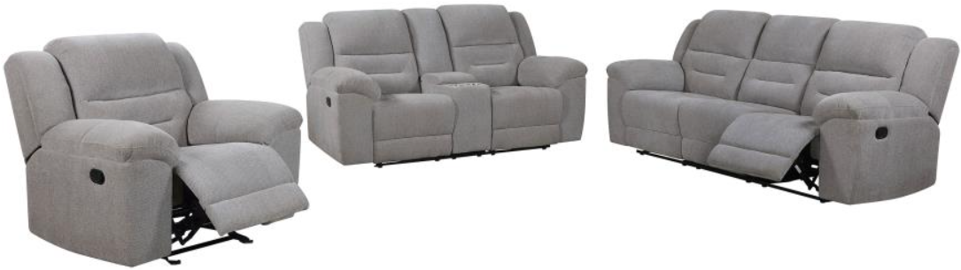 Complete set with manual reclining sofa, loveseat, and glider recliner for ultimate relaxation