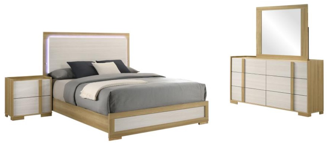 Includes: One (1) queen bed, one (1) nightstand, one (1) dresser, and one (1) dresser mirror
