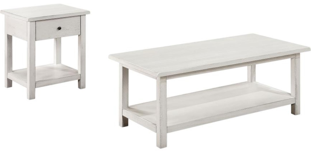 The Coaster® Payne 2-Piece Coffee and 1-Drawer End Table Set in White offers a charming and functional design with a distressed white finish. The coffee table provides ample surface space, while the end table features a convenient drawer for storage, making it a perfect blend of style and practicality for any living room.Read More
