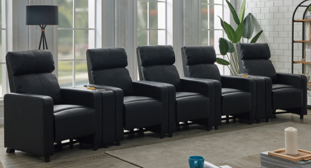 Choose this home theater recliner set to elevate your next home theater adventure.