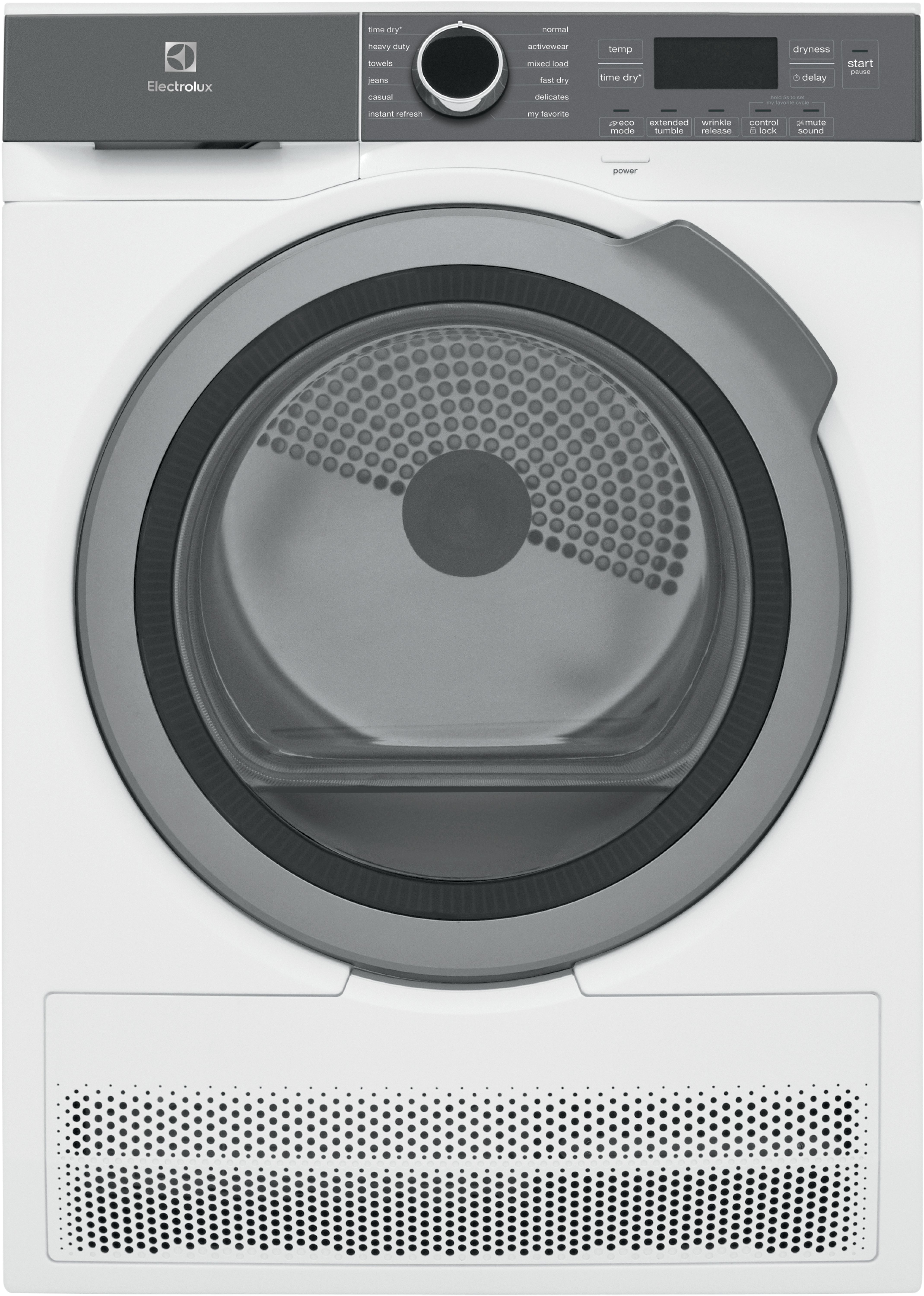 4.0 Cu. Ft. Compact Condensation Dryer is equipped with Gentle Dry Technology which uses lower heat to be gentler on your clothes and the environment. The Instant Refresh Cycle allows you to remove wrinkles and quickly refresh clothing, saving water and energy.Read More