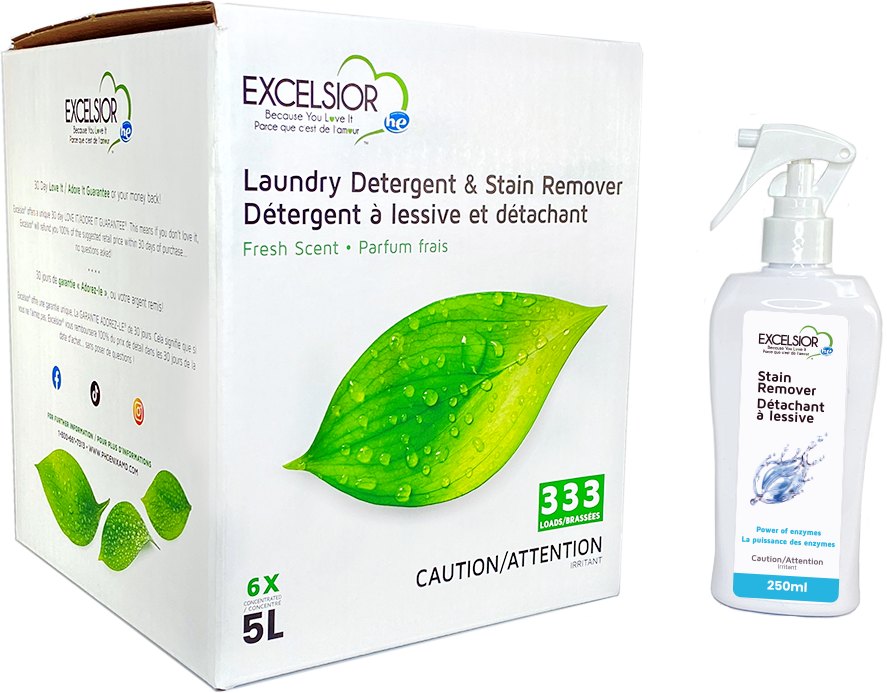Excelsior HE Laundry Detergent is a revolutionary product, offering amazing value and resulting in unsurpassed cleaning and performance, leaving clothes fresh and clean! It’s designed for high-efficiency washers; however, it is also safe to use in traditional washers as well. Only 15 ml of detergent is needed per load, which is less than the normal amount as compared to competitive brands! If using it in a traditional washer, just double the amount.Read More