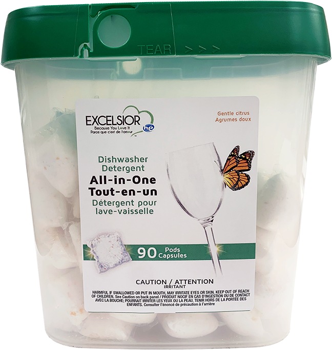 Excelsior HE Dishwasher Detergent Pods is an All-in-One Dishwasher Detergent, includes built-in rinse aid for an amazing shine. Gets rid of tough food stains while leaving behind a gentle citrus scent.Read More