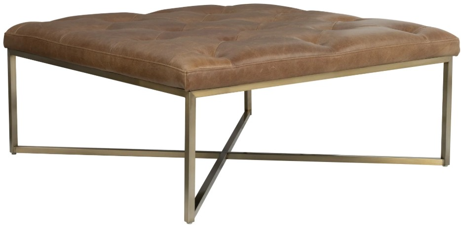Elegance meets functionality in the Hamilton ottoman. This gorgeous leather and brass ottoman can also become a coffee table perfect for adding some extra flair to your next cocktail hangout. Upholstered in a rich medium brown leather that is semi-aniline protected to stand up to everyday wear.Read More