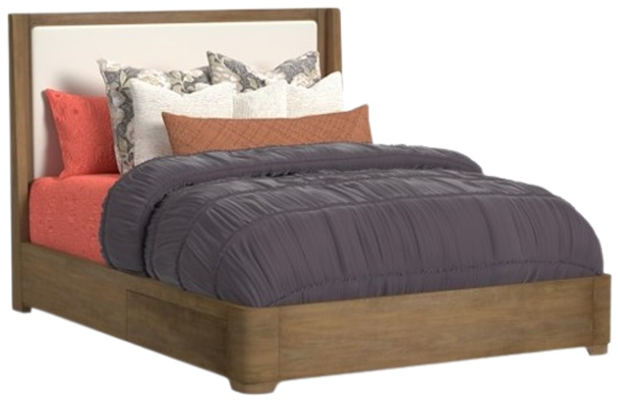 Simple geometry creates a look of timeless elegance for your bedroom with the Normandy queen upholstered storage bed. Inspired by European architecture, this storage bed offers a minimalist silhouette featuring an inviting, warm driftwood finish and plush, clean cream upholstery.Read More