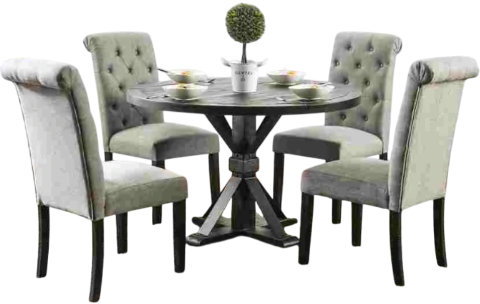 This exquisite dining set will be the talk of your next home-cooked meal, party, or small gathering with friends. Featuring a wood table top, pedestal base, and metal accents, this table has a timeless look you will enjoy for years to come. The matching chairs with padded seats and button-tufting will give your dining room that rustic aesthetic that will accentuate any color scheme.Read More