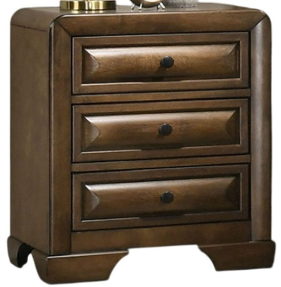 The Furniture of America® Caerwys Brown Nightstand features a rich brown finish and three spacious drawers for convenient bedside storage. Its classic design, combined with sturdy construction, adds both functionality and warmth to any bedroom, providing a stylish and practical storage solution.Read More