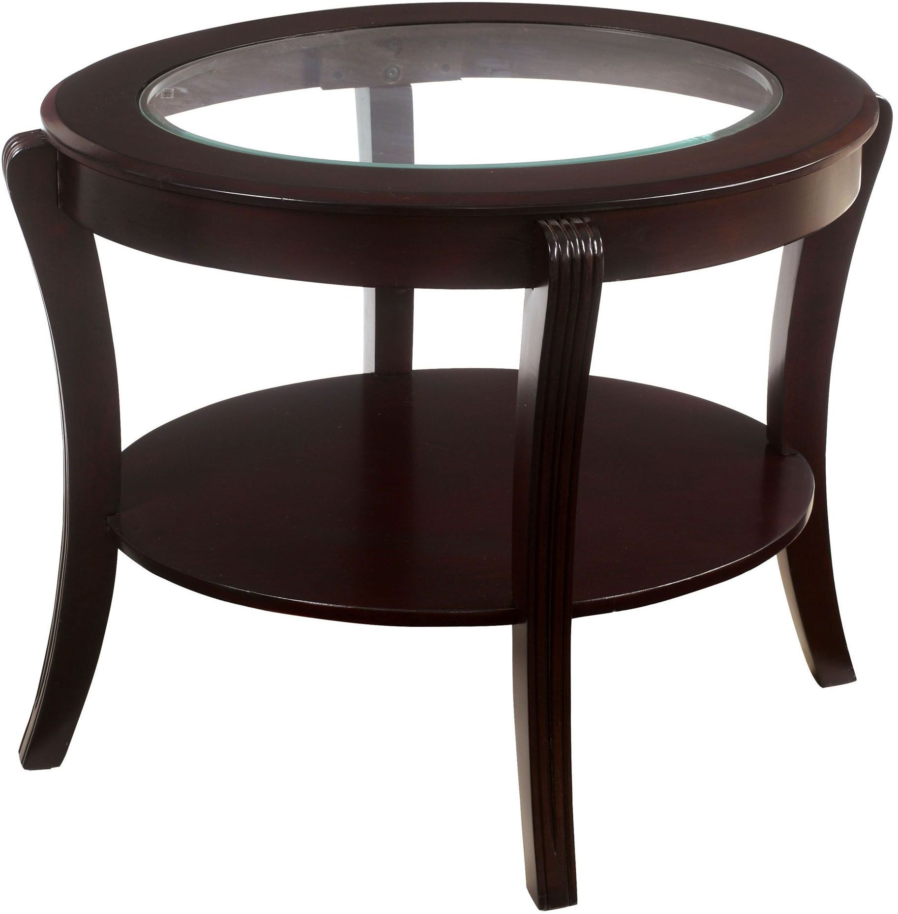 The elegant oval shape of these living room tables will add appeal to any living area. Each table has a beveled glass table top and an open shelf for display or storage.