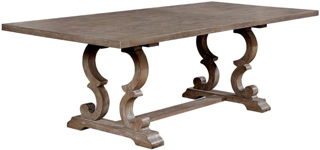 Your dining area says something about you, and this dining collection says that you are welcoming, warm, and generous. The soft natural tone finish of the wood is enough to put anyone at ease, but combined with a button tufted chair, you will have friends and family relaxing and enjoying their meal for hours. The trestle table base is delicately curved and offers your relaxed aura a touch of sophistication and class without being too intimidating.