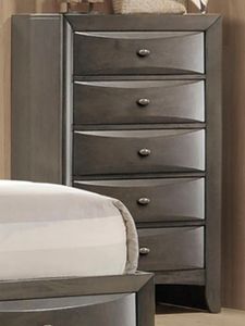 The Furniture of America® Zosimo Gray Chest features a sleek, modern design with clean lines and a bold gray finish. Its spacious drawers offer ample storage, making it perfect for organizing clothing or accessories. The sturdy construction and stylish look make it a functional and attractive addition to any room.Read More