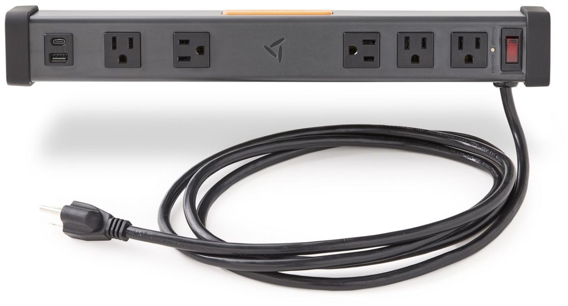 Tools and electronics stay charged and ready with the Gladiator® PowerStrip Bar. This bar includes a resettable 15 amp circuit breaker across five outlets, offering USB-A and USB-C utility outlets plus space for bulky and right angle chargers. With multiple mounting options, an 8 ft. tangle-resistant power cord and the Surge Protection feature, this Gladiator® PowerStrip Bar is prepped to power your toughest projects.Read More