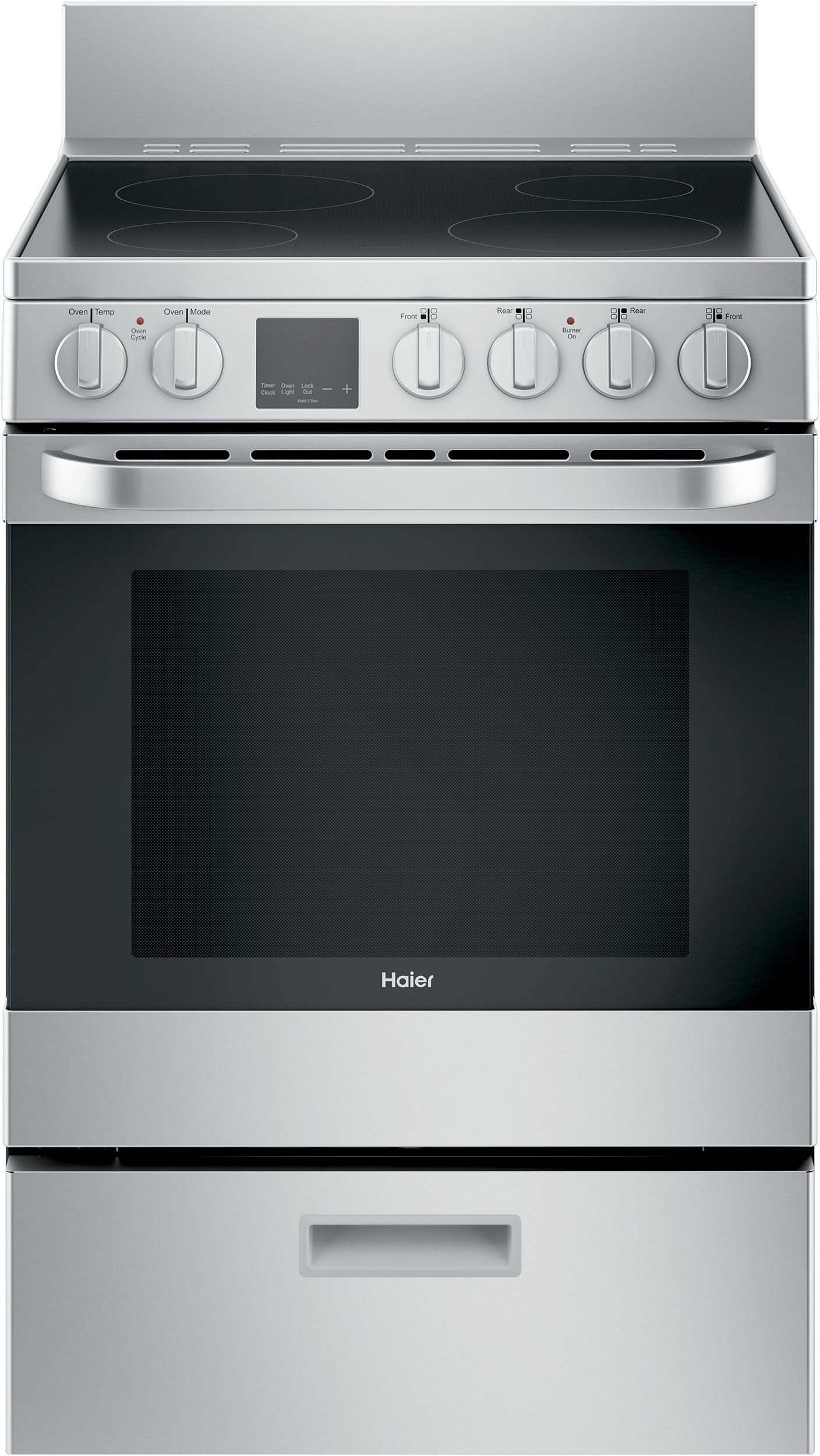 Achieve a streamlined look with an over-the-range microwave to match the Haier 24" stove (range). Evenly bake foods like roasts and cookies with this helpful feature that uses a fan to circulate heated air. A smooth, seamless surface creates a modern look that's easy to clean.Read More