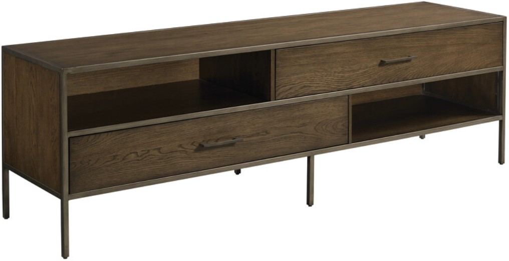 Cleo uses mixed materials of layered clear and smoke glass in a metal framework to add dimension and interest. The bottom shelf uses oak veneers in a deep brown wood finish. The metal is comprised of a dusky silver finish, for an overall look that evokes rich woodsy tones.Read More