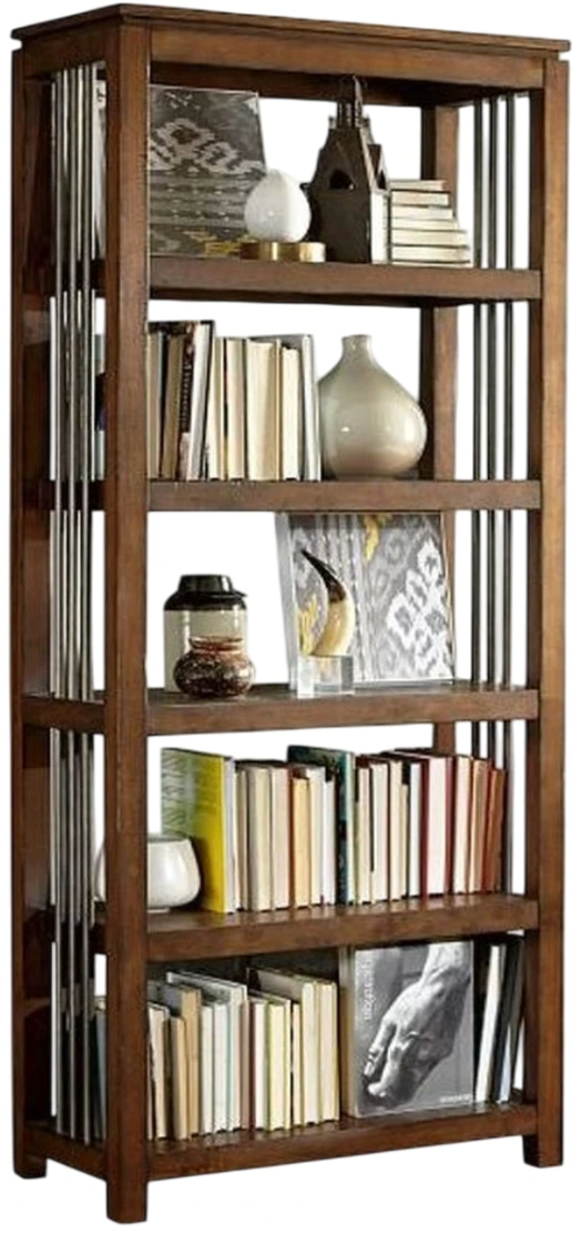 The Hammary® Hidden Treasures Brown Bookcase is a tall, striking piece providing ample vertical storage without taking up too much floor space. Lightweight despite its height, the design is made more visually interesting by its metal side detailing, making this bookcase not just functional, but also a stylish.Read More