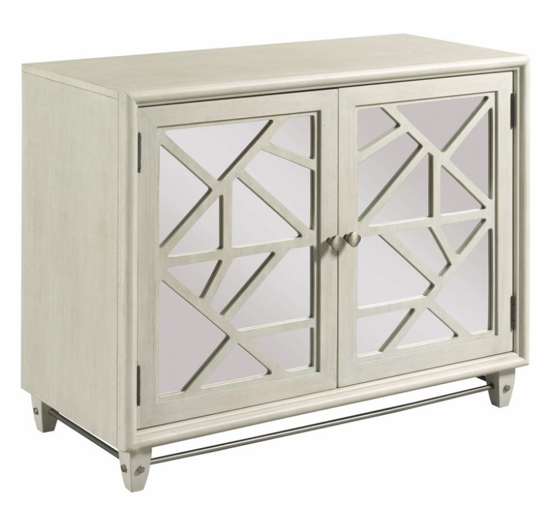 The Hidden Treasures Accent Cabinet has two doors with clear mirror accents. There is one adjustable shelf, and one drawer behind the doors, which allows for ample storage space. This piece is stylish for any living space, whether it be the living room, bedroom or entryway.Read More