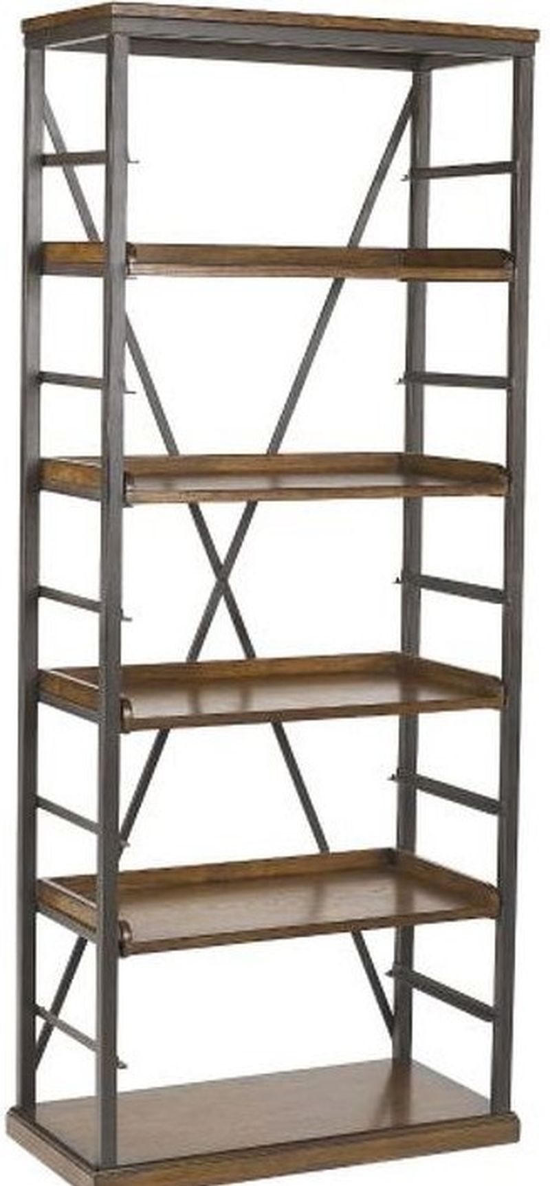 The Hammary® Studio Home Brown Bookcase is comprised of metal and wood shelving for books, accessories and treasured items. Adjustable shelving will accommodate all your needs. Crafted for durability and versatility, it enhances any living room, office, or bedroom while adding organization, charm, and a polished touch to your space.Read More