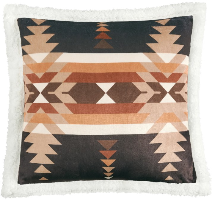 Captivating Aztec patterns in black backdrop add striking geometric allure to the Yosemite Campfire Sherpa Pillow. Whether used as an accent piece or as a lounging companion, this accent pillow brings bold Southwestern inspiration into your space. Part of our Campfire line.Read More
