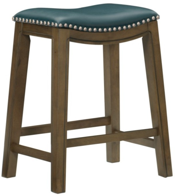 he stool is offered in three heights - 18-inches, 24-inches and 29-inches. The brown finished wood legs and seat apron feature routed accent while the green faux leather seat features nailhead trim that further defines the stool’s profile. 4 additional seat colors are available – brown, red, black and gray – in each stool height.