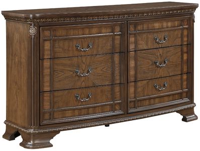 This dresser offers a perfect balance of beauty and function. With multiple spacious drawers and a warm brown wood finish, it brings both elegance and convenience to your bedroom. Designed for durability, this dresser provides stylish storage that keeps your space organized while elevating its charm.Read More
