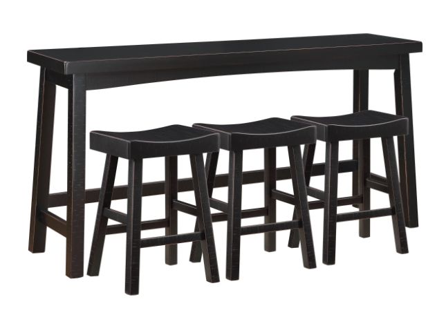 Stylistically versatile for placement in your home’s casual dining space, the transitional design of the included three 24-inch contour-seat barstools and 36-inch bar-height table is complemented with rusticated accent, subtle profile, and a neutral finish.Read More