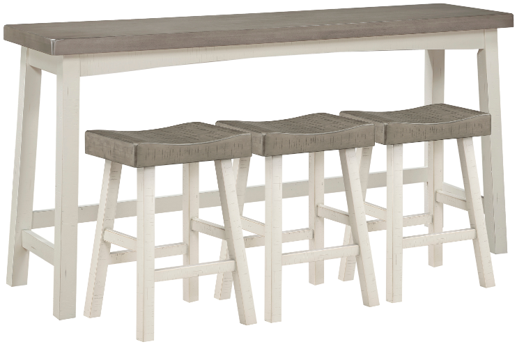 Stylistically versatile for placement in your home’s casual dining space, the transitional design of the included three 24-inch contour-seat barstools and 36-inch bar-height table is complemented with rusticated accent, subtle profile.Read More