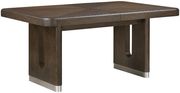 Elevate your dining and entertaining experience with this versatile extendable dining table, perfectly designed to accommodate your gatherings. Crafted from a durable blend of oak veneer, wood, and engineered wood, and finished in a sophisticated wire-brushed brown, this table offers both lasting quality and a contemporary aesthetic.Read More