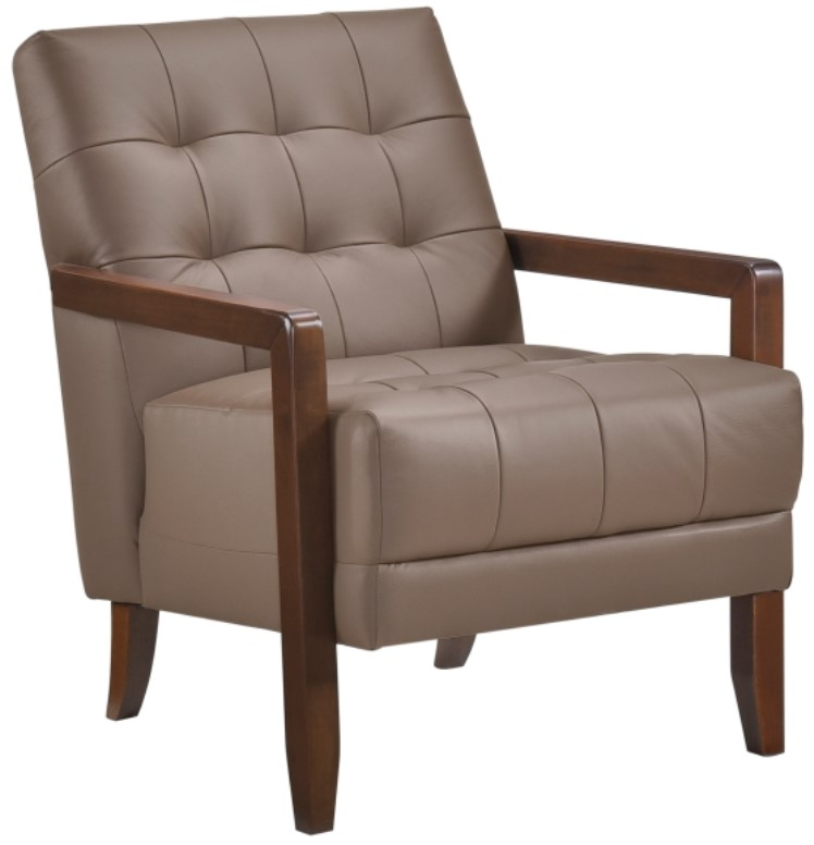 Elevate your living space with this top grain leather match accent chair, designed for timeless elegance, premium comfort, and lasting durability. Featuring a mid-century modern silhouette, deep tufted detailing, and a solid wood frame with sleek armrests, this chair blends sophisticated style with everyday functionality.Read More
