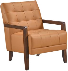 Elevate your living space with this top grain leather match accent chair, designed for timeless elegance, premium comfort, and lasting durability. Featuring a mid-century modern silhouette, deep tufted detailing, and a solid wood frame with sleek armrests, this chair blends sophisticated style with everyday functionality.Read More
