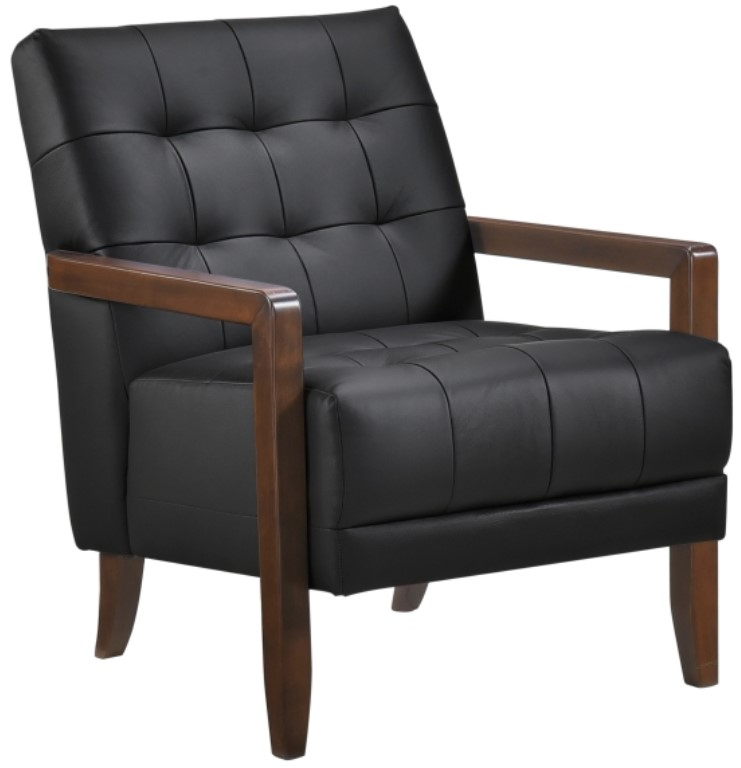 Elevate your living space with this top grain leather match accent chair, designed for timeless elegance, premium comfort, and lasting durability. Featuring a mid-century modern silhouette, deep tufted detailing, and a solid wood frame with sleek armrests, this chair blends sophisticated style with everyday functionality.Read More