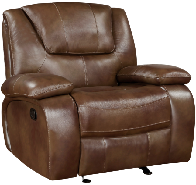 The chair’s glider reclining mechanism allows for gentle rocking as well as a pull tab-engaged reclining action.