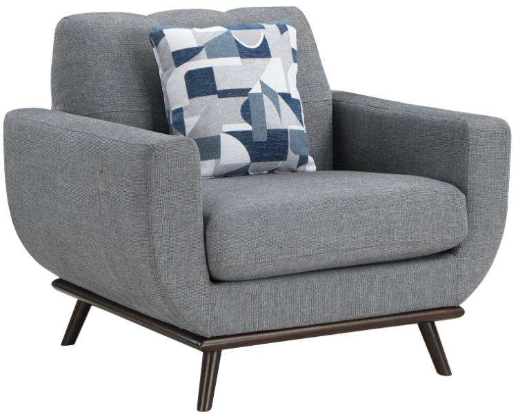 Mid-Century Modern inspired design comprises the timeless look of the Everton Collection. Gray chenille covers the modern framed chair with a geometric print toss pillow, walnut-finished wood base rail and legs providing complementing accent to the group.Read More