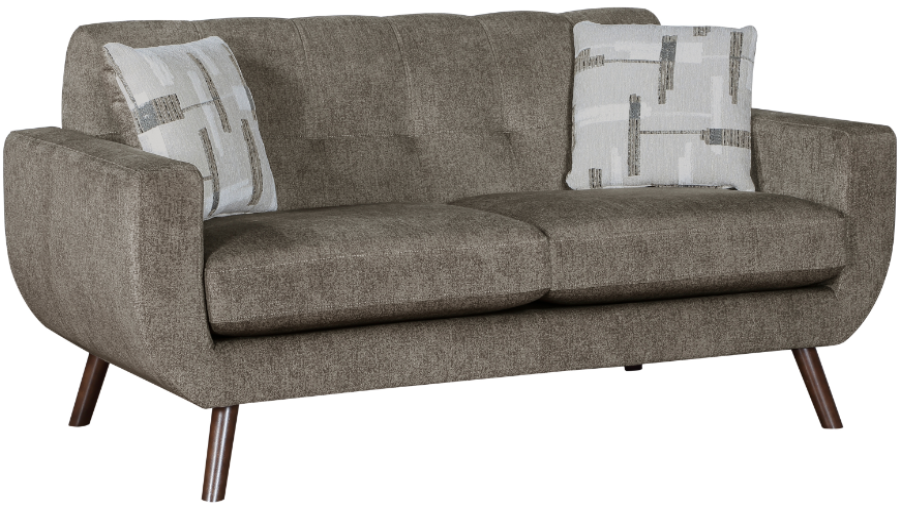 Timeless design never goes out of style, and the classic look of the Janne Collection follows the mid-century aesthetic of clean lines and modern sensibility. Brown, cafe-hued, textured microfiber upholstered fabric covers the retro-inspired frames of the love seat.Read More