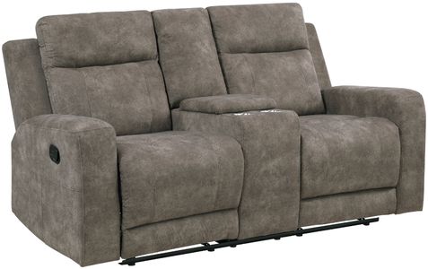 Experience ultimate shared relaxation with our contemporary luxurious double reclining loveseat, complete with a convenient center console. Upholstered in a soft and durable textured microfiber, this loveseat features plush foam padding over individual pocket coils, providing exceptional comfort and support for two.Read More